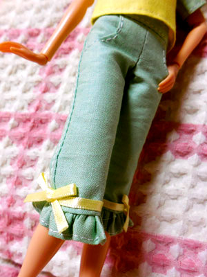 ボトムはパンツだけど、裾にフリルとリボンを付けて、