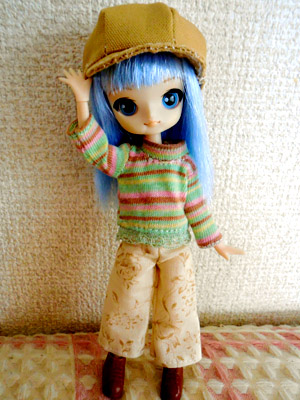 おまけでボーダーのトップスとキャスケット帽も作った。