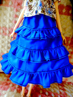 濃いブルーの無地は、ロングスカートにしてみたよ。