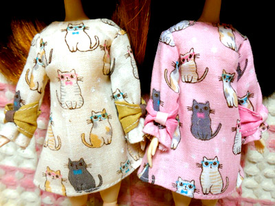 100均の猫柄Wガーゼで、色違いお揃いワンピemoji