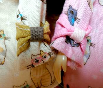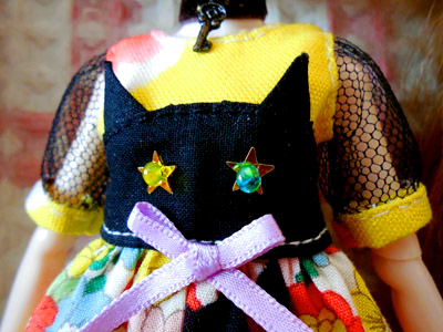 リボンが紫なのは、よく見ると(生地の)黒猫ちゃんが、首に紫色の