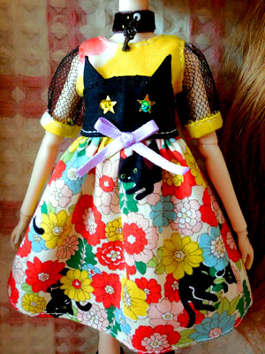 猫柄生地で思い付くまま作った服を着てもらいましたemoji