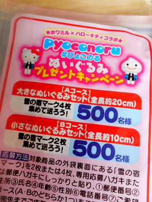 裏を見ると、キティさんとコラボしたぬいぐるみのプレゼント