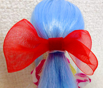 赤いオーガンジーリボンでリボン飾りを作りました