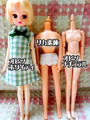 比較。 リカ素体に比べて、オビツはどちらも白いです。