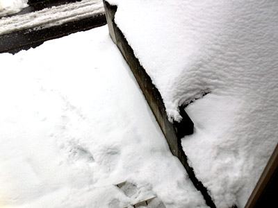 玄関前なう。 もう4月も目前なのに・・何てこった・・(´Д`)