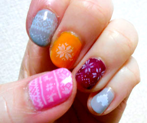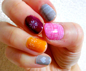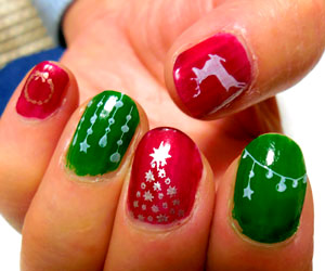 両手だとこんな感じ。一応左右対称で、クリスマスモチーフのスタンプを