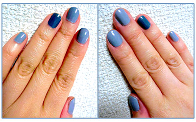 シンプルなグレーに、薬指だけブルーグレーでアクセント。