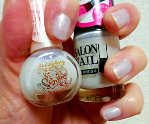 マイメロのラメ入りの白(ほぼ透明)を重ねてみました。