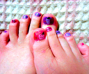 手でも足でも、赤とか濃い色を塗ると退く程青白く見えるのに、