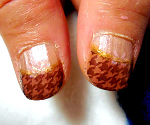 親指は千鳥格子の太フレンチ。境目にゴールドでライン引いて、