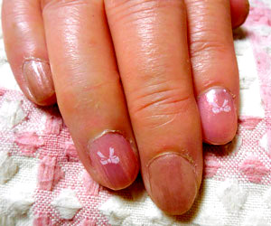 ピーチメルバの指には本人の希望でリボンをスタンプしました