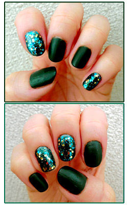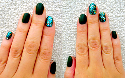 2/27@渋色マットと、煌めきラメのグリーンネイル。