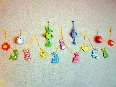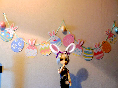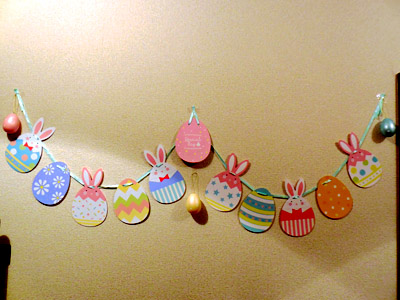 母が買ってきた100均のガーランドと卵や雛や兎でカラフルに