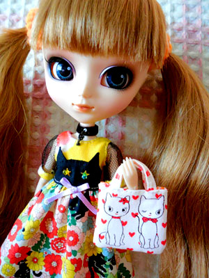 リボンが紫なのは、よく見ると(生地の)黒猫ちゃんが、首に紫色の