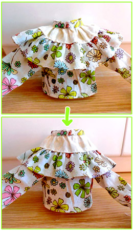 胸元のフリルにボリュームがあり過ぎて、広がり方が