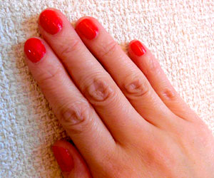 爪も赤にしたくなって、しまむら3色セットの赤にしてみた。
