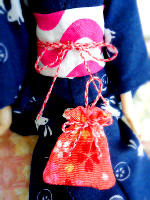 余っていたちりめんの端切れで、巾着も作ってみた☆