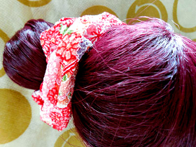 髪はアップで。 和柄のシュシュは大分昔に100均で買ったやーつ。