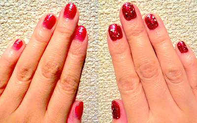 仕上げに、オーロララメのトップコートでキラキラに・・