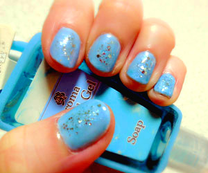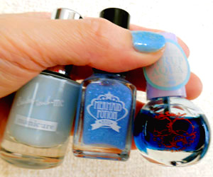 左から順番に、ミルキーブルー → 海月w → シルバーラメを