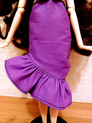 スカートはタイトで、裾は斜めに切り替えたデザイン。