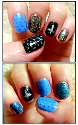 敢えて色合いもデザインも違う “ちぐはぐネイル” にしました。