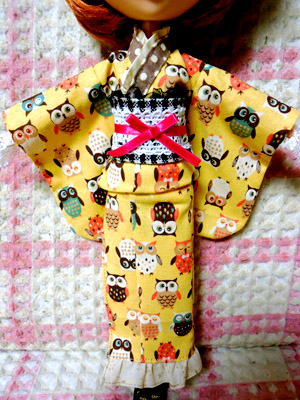 まだ使ってなかった、和風の梟柄の生地があった事を