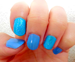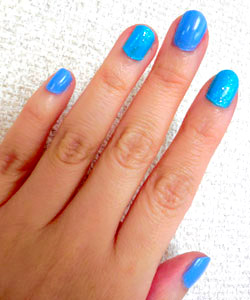 左手は青系。解り難いけど二種類の青で部分的にラメ