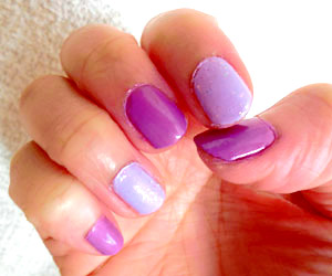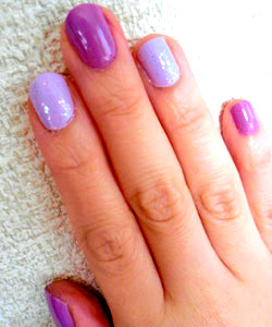 右手は紫。此方も二色使いで薄い方にラメを重ねました。