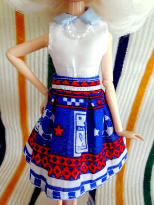 マリン柄のてぬぐいは、タックスカートにしてみました。