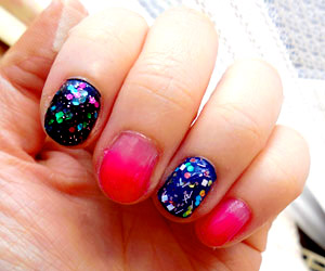 リキュールベリーグラデに宇宙ネイル(風)を合わせてみた。