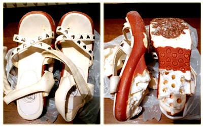 ふと自分の足元見て吃驚! (履いてた)サンダル崩れとる!!!!