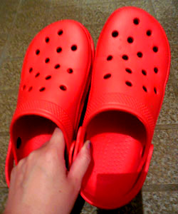 ↑急遽買ってもらったダイソーのクロックス風サンダル。