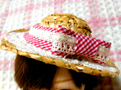 唯一の付属品である帽子。 レエスたっぷりの麦わら帽子