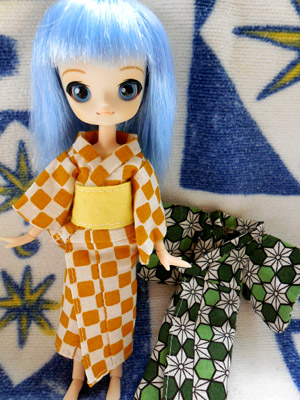 そんな訳で、先日作った浴衣で屋根裏玩具箱から