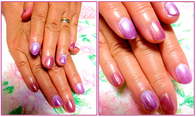 全体にピンクを塗ってから、パープルを重ねてグラデにすると綺麗!